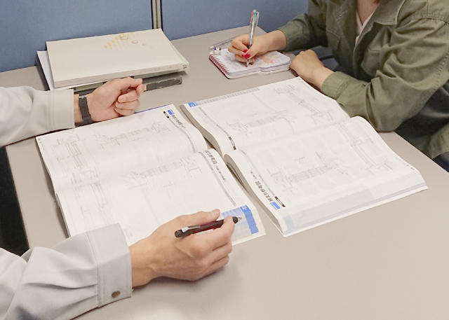 当社では定期的に社内会議を行っています。ひとりひとり実務で起こった事例を共有することで、設計の質を保ちながらスキルの幅を広げています。